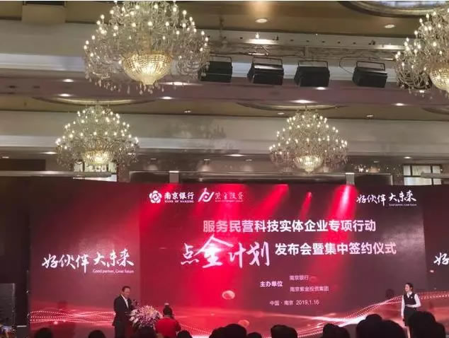 2019年1月16日,由南京银行、紫金投资集团主办的“服务民营科技实体企业专项行动-点金计划”发布会暨签约仪式在南京举行。此次专项行动,旨在为南京地区具有创新活力和高成长潜力的民营科技实体企业提供定制化和综合化的金融服务支持;也是南京银行、紫金投资集团切实贯彻南京市委2019年1号文件精神,响应南京“创新名城”建设,进一步提升服务实体经济质效、服务好民营科技实体企业的具体举措。以江苏苏夏能源集团(以下简称苏夏集团)为代表的数十家企业现场签约,共获数亿元债权融资支持。
