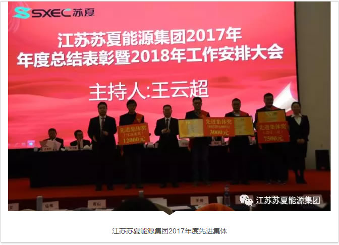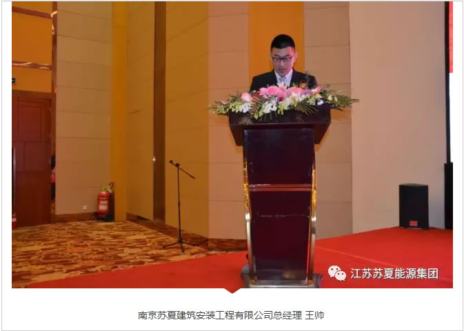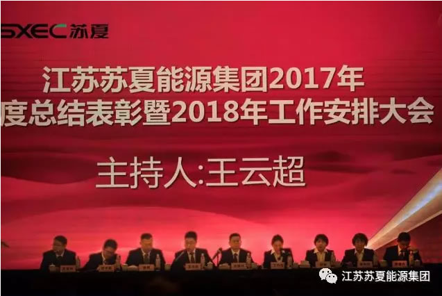 2018年2月12日上午,江苏苏夏能源集团在南京国贸国际大酒店举办了集团2017年终总结大会,江苏苏夏能源集团总裁王国兴、集团常务副总裁、南京苏夏工程设计有限公司总经理丁巧芬、集团副总裁、南京苏夏工程设计有限公司常务副总经理王云超、南京苏夏工程设计有限公司副总经理佴耀、姜辉、李秀琴、甘子君、王显东、薛瑞方、南京建筑安装工程有限公司总经理王帅,以及全集团四百余位员工代表加了本次大会。