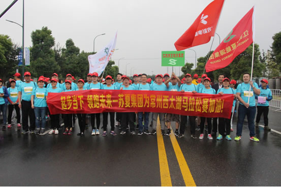 10月14日上午,2017常州西太湖国际马拉松赛在西太湖畔开赛,这一赛事吸引了来自世界各地的两万多名马拉松爱好者前来参赛。江苏苏夏能源集团总裁王国兴先生亲自率领集团员工30余人参加了这次比赛。