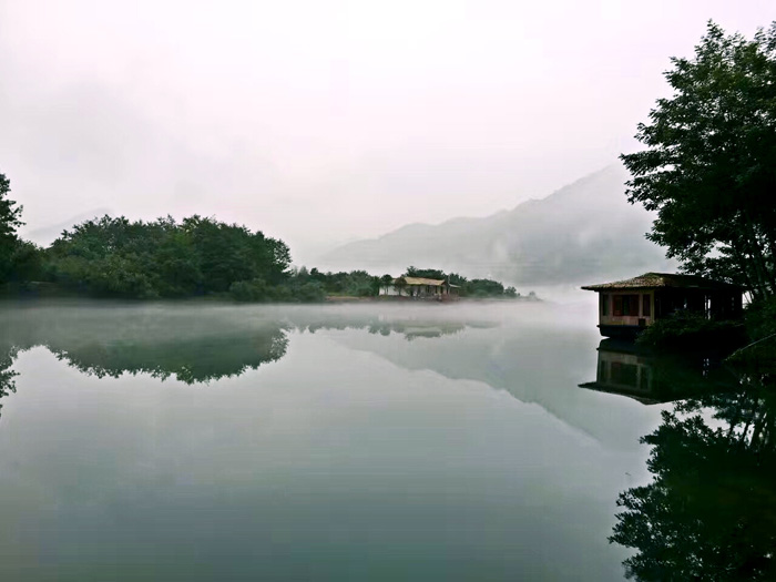 我们乘船游览太平湖,放眼望去,水面深邃湛蓝,直达天际,两岸山地连绵,透出翠绿的美,云雾缭绕其间,隐约看到山的面庞。这里好似一幅长长的山水画,画中有俊秀的山峦,清澈的江水,错落的小村庄,处处透出一股世外桃源的气息。