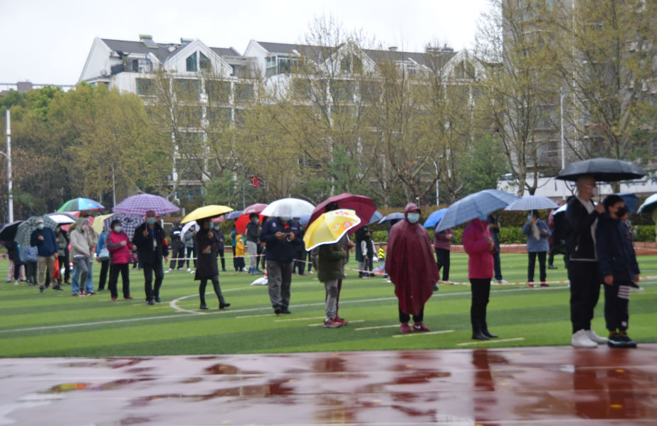 雨越下越大,来做核酸的群众,积极配合,自觉戴口罩,间隔一米距离,提前准备好苏康码、行程码,现场秩序井然,速度也很快。他们没有抱怨,对我们很关心,听着一声声辛苦了,心里暖暖的。