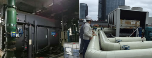 溴化锂--水吸收式制冷机多用于电厂或有余热利用的场所,主要以低品位蒸汽或热水作为动力驱动,通过一系列换热器之间的和热传递达到使用工况,主要供冷用户即为厂内各用冷建筑以及厂周围3公里范围内的用冷建筑,其特点是通过利用厂内的余热废热,一方面达到能源梯级利用的目的,提高了热效率,另一方面大大降低了供冷成本。
