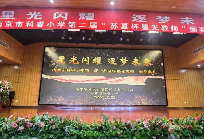 多年来南京苏夏设计集团股份有限公司一直深切关注着南京市科睿小学发展,关注科睿小学每一位老师的辛勤工作、每一位同学的健康成长。2021年南京苏夏设计集团股份有限公司首次冠名南京市科睿小学第一届“苏夏杯”,2022年公司再次冠名科睿小学第二届“苏夏杯星光教师”颁奖典礼,继续为科睿小学的发展献上绵薄之力。