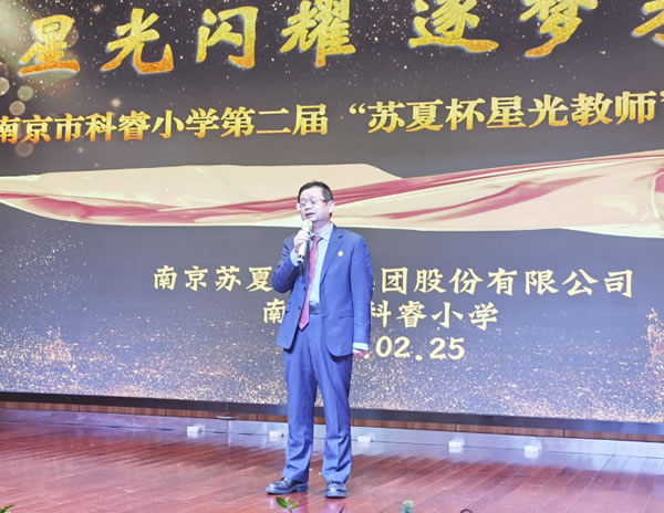 苏夏集团和科睿小学携手起来,创建“苏夏杯星光教师奖”,奖励为祖国未来默默耕耘的老师们,是对孩子、对老师、对国家的深厚情义。为此,由衷感谢苏夏集团、感谢王董事长为鼓楼教育、为科睿小学的发展倾注的满腔热忱。祝愿科睿小学和苏夏集团的深厚情谊以“星光”为证,携手同行、共赴辉煌。