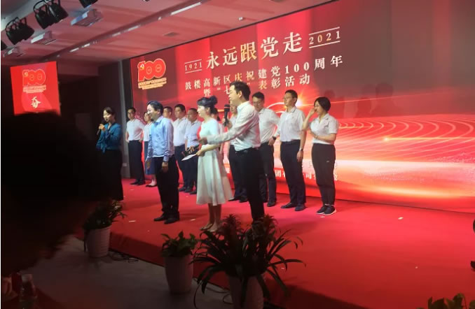2021年6月29日鼓楼高新技术产业开发区在鼓楼创新广场二楼会议室召开“永远跟党走——鼓楼高新区庆祝建党100周年暨“七一”表彰会”。参加会议的有:鼓楼高新区企业党组织书记、党务工作者、党员代表、预备党员、入党积极分子等。