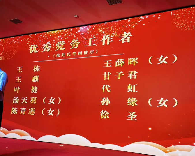 表彰会还安排了新党员宣誓和文艺节目演出,苏夏集团有三名新党员(周婷婷、刘青华、潘亦澄)参加了宣誓。