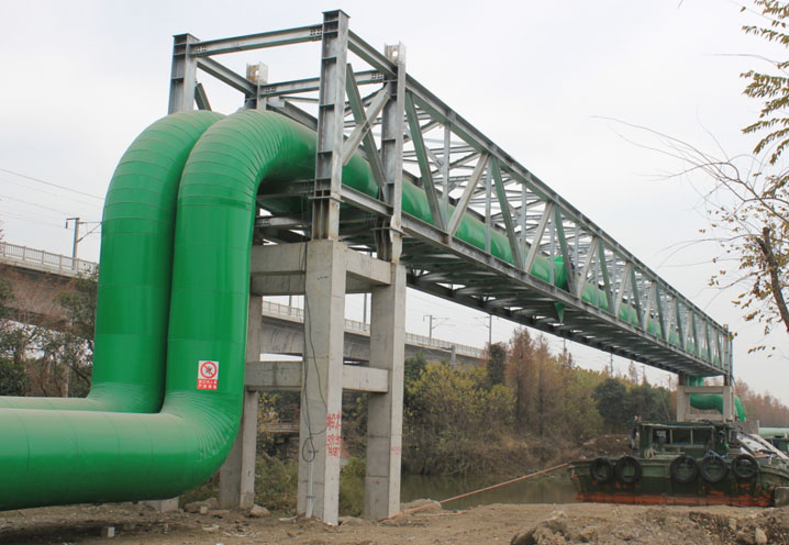 项目介绍:从华电望亭发电厂供热站接出两根并行管道沿厂围墙向北敷设至望虞河(1#线为DN800,2#线为DN900),跨越望虞河,沿沪宁铁路南侧向西至锡通高速,跨锡通高速向西至新华路,跨越新华路穿越沪宁铁路(2#线DN900管至新区珠江路2#桥位置变径为DN600),沿沪宁铁路北侧向西至天山路(2#线接至天山路线,1#线沿沪宁高铁北侧至无锡协联热电厂内供热母管)。管道沿线经过宽130米的望虞河,跨过16条小河,穿过7条城市道路,顶管穿越京沪铁路和沪宁城际铁路。其中地埋管占总长的一半。