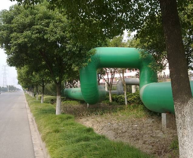 电厂设2条DN500的主管,分别向南北敷设,南线主要供汽温州工业园、富豪工业园;北线主要供汽三星印染、医药化工区、沙溪化工园等。目前南、北线均已竣工投产。设计参数:压力1.2MPa,温度320℃,管网的设计负荷南北线均为60t/h。
