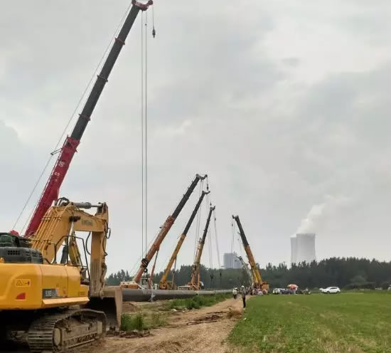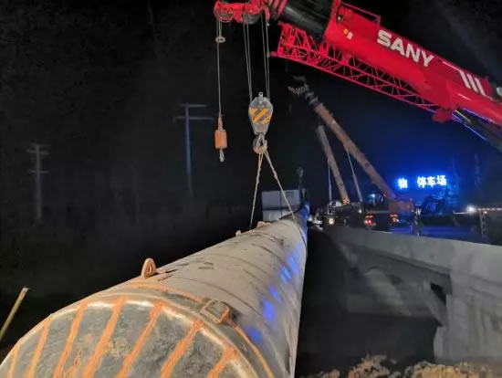 该项目主管线全长20多公里,施工中DN600的主管道先沿铁路后穿涵洞、再跨河流、越村庄,经过了二十多公里的跋涉,在濉溪经济开发区内敷设至巨成化工、口子酒厂和理士电池的用户门前。由于项目中热网管线途径地形特殊,工程路况复杂、技术难度大,工艺要求高,因此工期任务非常艰巨。在种种困难,重重压力面前,苏夏项目部成员在甘子君、李敬泽两位领导的带领下不畏艰险、迎难而上,以“团结、拼搏、创新”的企业精神为指导,攻坚克难,突破多道瓶颈,成功解决了重大施工难点,更经受住了汛期等各类险情的考验,于2019年1月4日顺利完成了淮北国安项目的主管网的吹扫,此事作为当地的热点事件,引来了当地热电行业及主流媒体的争相报导。