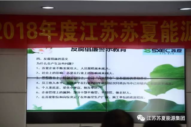会上,甘子君同志详细解读了公司“反腐倡廉六大禁令”的内容与含义,并结合实例讲述了28条腐败现象及近年来新的腐败问题作为警示,最后强调了苏夏集团反腐倡廉的意义。