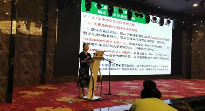 南京苏夏设计集团股份有限公司的丁巧芬总经理和王云超常务副总经理作为国内长输低能耗供热领域的专家,应邀出席,丁巧芬总经理作了专题报告。丁总在专题报告中,详细阐述了苏夏的长输低能耗技术的发展,作为国内一流供热领域集成服务商,苏夏在长输低能耗热网技术上一直处于领先水平,业绩遍布全国各地,拥有多个辉煌的业绩:国内蒸汽管网输送距离最长,单线主管最长达到63km;蒸汽管道管径最大达到DN1200,最大供热量每小时600t;每公里温降最低可以达到1~2℃以内;次高温次高压管线长度达到20km,已经投运;输送蒸汽参数最高可以达到10MPa以上。
