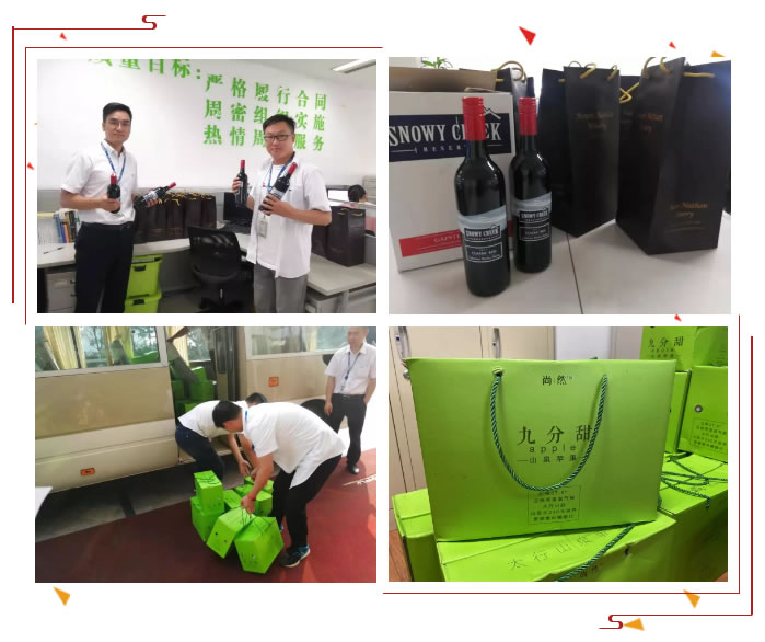 迎盛世华诞,举国上下皆大欢喜。江苏苏夏能源集团在喜庆的日子里特意为股东员工们准备了节日福利——每人两箱红酒,一箱苹果。祝福大家平平安安,喜庆长久!