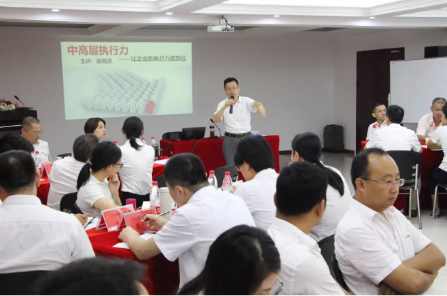 此次的封闭式培训由苏夏集团副总裁丁巧芬主持,培训内容围绕团队执行力为主题开展,苏夏集团总裁王国兴在培训前做了动员讲话。培训特邀外聘专家团队执行力训练金牌导师吴湘洪授课,他从“企业执行力的三个障碍”、“提升部门执行的七大系统”、“提升下属/自己执行力的五法宝”等七个方面,给苏夏集团中高层领导及项目经理带来整整一天干货满满的培训。